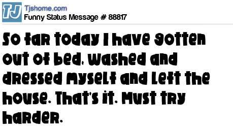 X So far today I have gotten out of bed, washed and dressed myself and left the house. That's it. Must try harder.
