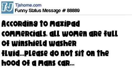 X is According to maxipad commercials, all women are full of winshield washer fluid...please do not sit on the hood of a mans car...