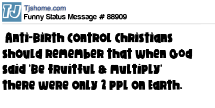 X Anti-Birth Control Christians should remember that when G0d said 'Be fruitful & multiply' there were only 2 ppl on Earth.