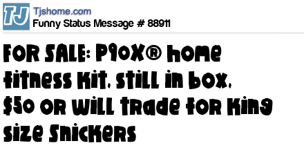 X FOR SALE: P90X® home fitness kit, still in box, $50 or will trade for king size Snickers