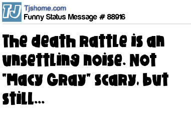 X The death rattle is an unsettling noise. Not "Macy Gray" scary, but still...