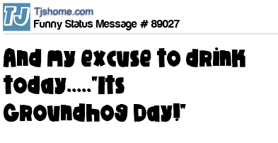 X says and my excuse to drink today....."Its Groundhog Day!"