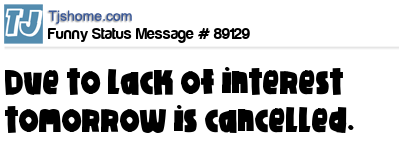 - # 38511 Due to tonight's lack of sleep, tomorrow has been cancelled.