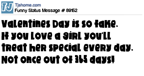 X is Valentines Day is so fake. If you love a girl you'll treat her special every day. Not once out of 365 days!