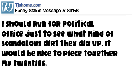 X I should run for political office just to see what kind of scandalous dirt they dig up. It would be nice to piece together my twenties.