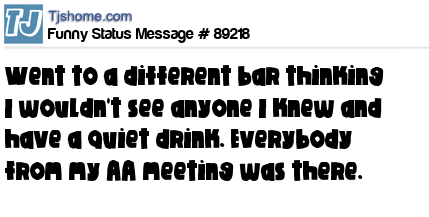 X Went to a different bar thinking I wouldn't see anyone I knew and have a quiet drink. Everybody from my AA meeting was there.