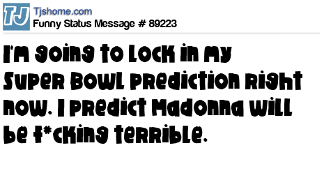 X says I'm going to lock in my Super Bowl prediction right now. I predict Madonna will be f*cking terrible.