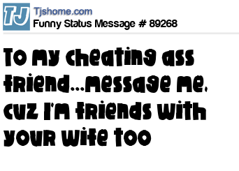 X is to my cheating ass friend...message me, cuz I'm friends with your wife too
