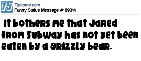 X It bothers me that Jared from Subway has not yet been eaten by a grizzly bear.