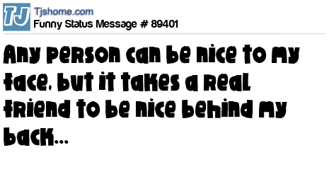 X Any person can be nice to my face, but it takes a real friend to be nice behind my back...