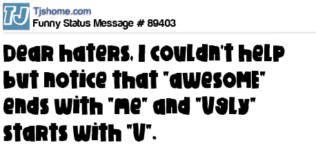 - # 61893 DEAR HATERS, I COULDN'T HELP BUT NOTICE THAT....'awesome' ends with "me"and 'ugly' starts with "u"