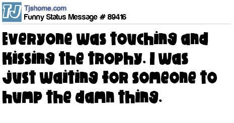 - # 164095 See them fools kissing that trophy after everyones nasty d beaters been touching it??? Ewwww That Trophy now has more clap than the audience!!!!