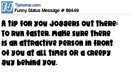 X says A tip for you joggers out there: To run faster, make sure there is an attractive person in front of you at all times OR a creepy guy behind you.