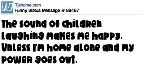 X The sound of children laughing makes me happy. Unless I'm home alone and my power goes out.