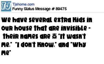 X is We have several extra kids in our house that are invisible - their names are ~ "It wasn't me," "I don't know," and "Why me"