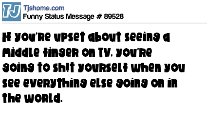 X If you're upset about seeing a middle finger on TV, you're going to sh!t yourself when you see everything else going on in the world.