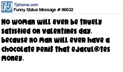 X is No woman will ever be truely satisfied on valentines day, because no man will ever have a chocolate peni$ that ejacul@tes money.