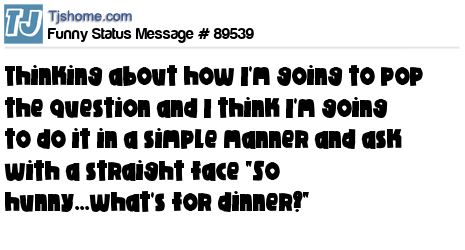 X is thinking about how I'm going to pop the question and I think I'm going to do it in a simple manner and ask with a straight face "So hunny...what's for dinner?"