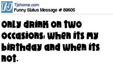 - # 72246 I only drink on two occasions; when its my birthday and when its not.