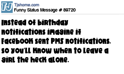 X says Instead of birthday notifications imagine if Facebook sent PMS notifications, so you'll know when to leave a girl the heck alone.