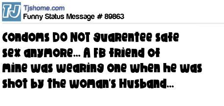 - # 203781 Condoms do not guarantee safe sex. A friend of mine was wearing one when he was shot by the woman’s husband.