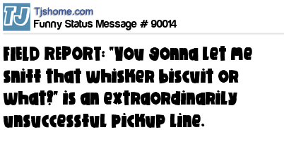 X FIELD REPORT: "You gonna let me sniff that whisker biscuit or what?" is an extraordinarily unsuccessful pickup line.