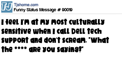 X I feel I'm at my most culturally sensitive when I call Dell tech support and don't scream, "What the **** are you saying?"
