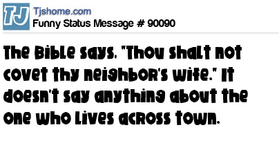 X The Bible says, "Thou shalt not covet thy neighbor's wife." It doesn't say anything about the one who lives across town.