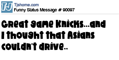 X is Great game Knicks...and I thought that Asians couldn't drive..