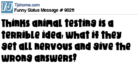 - # 104338 I think animal testing is a terrible idea; they get all nervous and give the wrong answers.