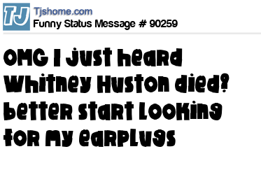 X OMG I just heard Whitney Huston died? better start looking for my earplugs
