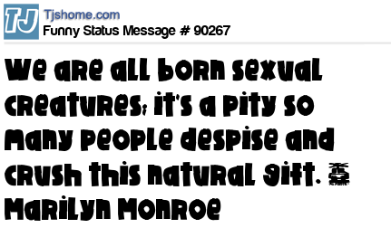 X says We are all born sexual creatures; it's a pity so many people despise and crush this natural gift. ~ Marilyn Monroe