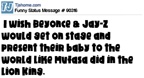 X is I wish Beyonce & Jay-Z would get on stage and present their baby to the world like Mufasa did in the Lion King.