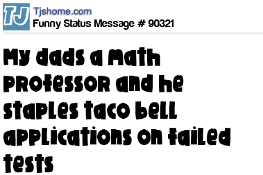 - # 83321 My math teacher staples Burger King applications on failed tests.