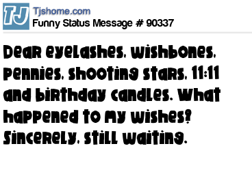 X says Dear eyelashes, wishbones, pennies, shooting stars, 11:11 and birthday candles. What happened to my wishes? Sincerely, still waiting.