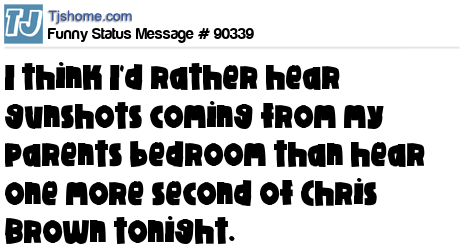 X is I think I'd rather hear gunshots coming from my parents bedroom than hear one more second of Chris Brown tonight.