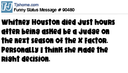 X says Whitney Houston died just hours after being asked be a judge on the next season of the X Factor. Personally I think she made the right decision.