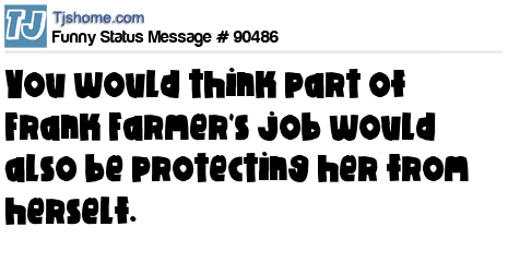 X is You would think part of Frank Farmer's job would also be protecting her from herself.