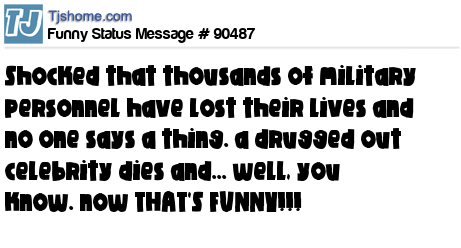 X is shocked that thousands of military personnel have lost their lives and no one says a thing. a drugged out celebrity dies and... well, you know. now THAT'S FUNNY!!!