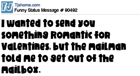 X I wanted to send you something Romantic for Valentines, but the mailman told me to get out of the mailbox.
