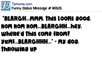 X says "BLARGH...mmm, this looks good. nom nom nom...BLARGHH...hey, where'd this come from? yum!...BLARGHHH..." - my dog, throwing up