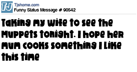 X says Taking my wife to see the Muppets tonight. I hope her mum cooks something I like this time
