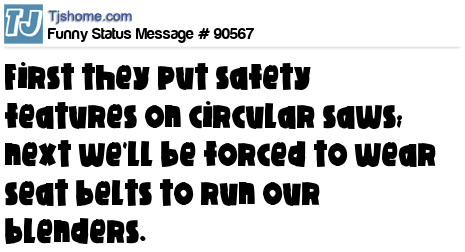 X First they put safety features on circular saws; next we'll be forced to wear seat belts to run our blenders.