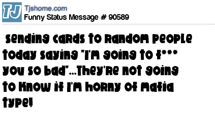 X sending cards to random people today saying "I'm going to f*** you so bad"...They're not going to know if I'm horny of mafia type!