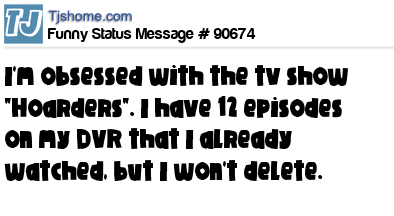 - # 104607 My wife said "what is wrong with you? You have recorded 17 episodes of Hoarders." I said "I know, don't you see the irony of it, I'm hoarding shows of Hoarding."