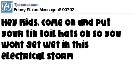 X is hey kids, come on and put your tin foil hats on so you wont get wet in this electrical storm