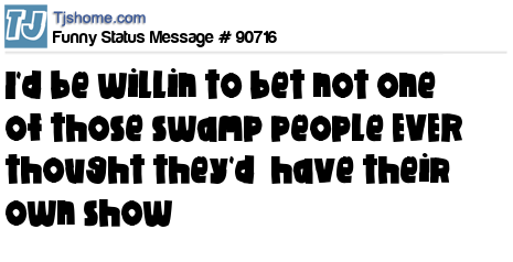 X is i'd be willin to bet not one of those swamp people EVER thought they'd have their own show