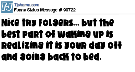 X Nice try Folgers... but the best part of waking up is realizing it is your day off and going back to bed.