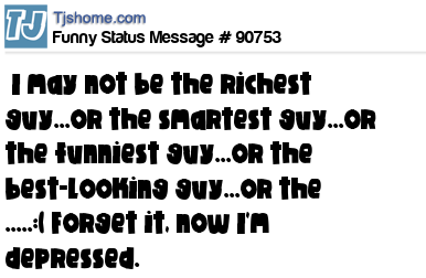- # 92980 I may not be the richest guy...or the smartest guy...or the funniest guy...or the best-looking guy...or the .....:( Forget it, now I'm depressed.