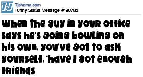 X says When the guy in your office says he's going bowling on his own, you've got to ask yourself, 'have I got enough friends